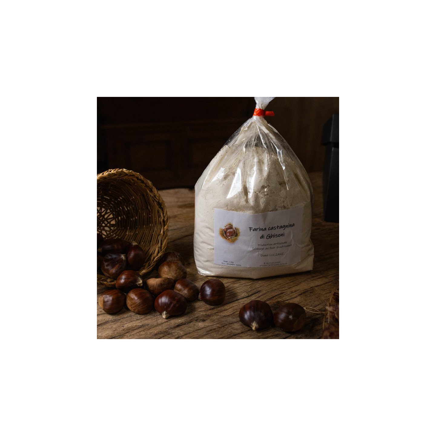 Découvrez la farine de châtaigne artisanale produite à Ghisoni, partie intégrante de Parc Naturel Régional de Corse , par Dume Luciani. Issue de châtaignes récoltées localement, séchées et biscuitées selon la tradition corse, cette farine se distingue par sa texture fine, sa douceur naturelle et sa saveur légèrement sucrée et noisette qui la rend unique en cuisine.