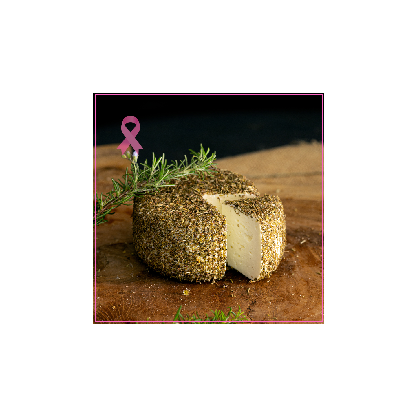 Fromage frais, à la texture fondante et moelleuse, est recouvert à la main d’herbes aromatiques sèches.